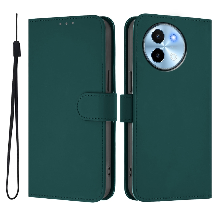 Funda de Cuero con Cordón para Teléfono con Sensación de Piel Global para Vivo Y38 5G/Y200I (Verde Oscuro)