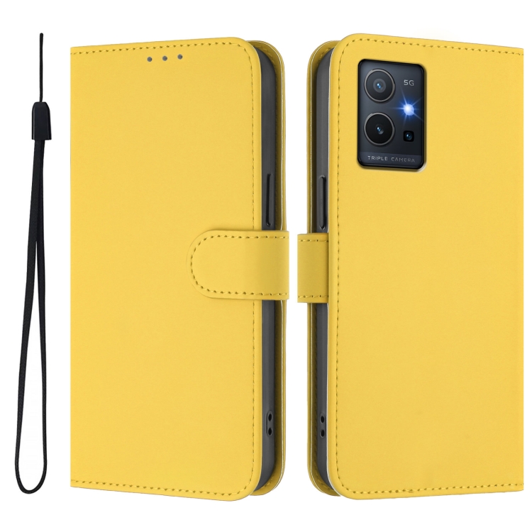 Funda de Cuero con Cordón para Teléfono con Sensación de Piel Global para Vivo Y55S 2023 5G / Y55 5G (Amarillo Limón)