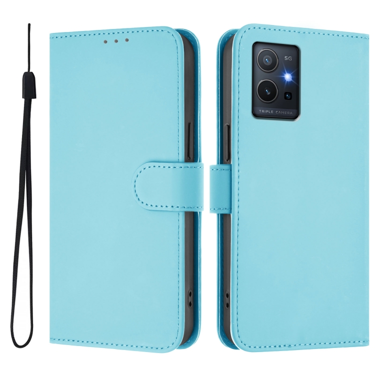 Funda de Cuero con Cordón para Teléfono con Sensación de Piel Global para Vivo Y55S 2023 5G / Y55 5G (Azul Cielo)
