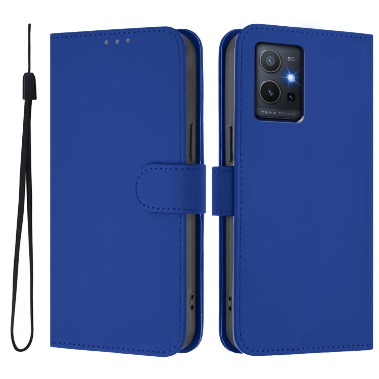 Funda de Cuero con Cordón para Teléfono con Sensación de Piel Global para Vivo Y55S 2023 5G / Y55 5G (Azul Oscuro)