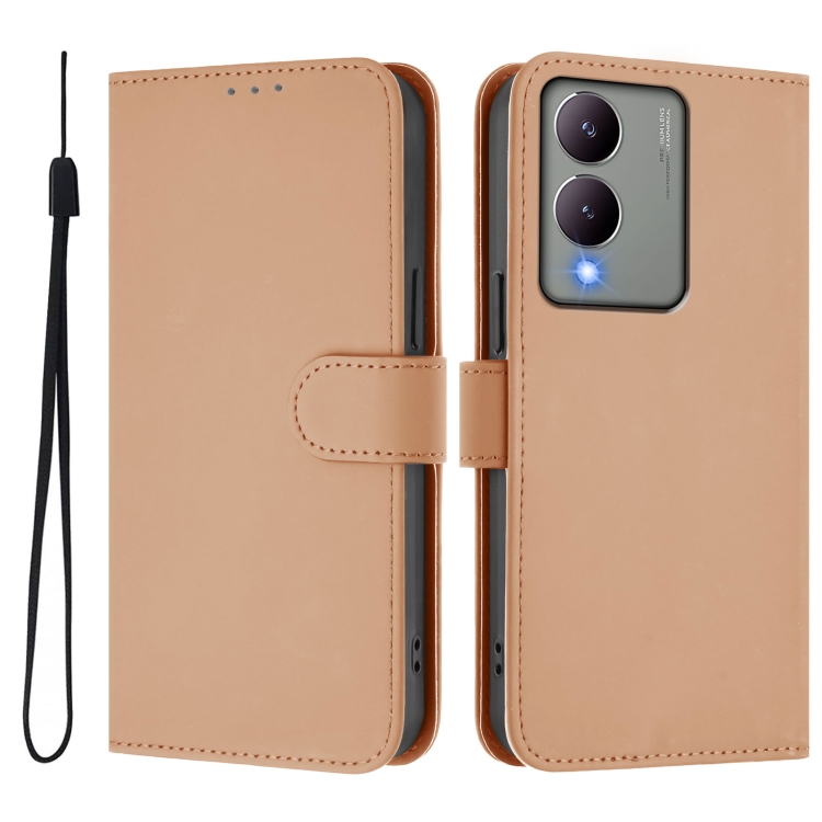 Funda de Cuero con Cordón para Teléfono con Sensación de Piel Global y Color Liso para Vivo Y17S 4G (Desnudo)