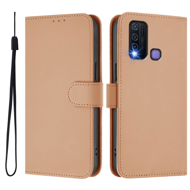 Funda de Cuero con Cordón para Teléfono con Sensación de Piel Global y Color Liso para Vivo Y30 4G (Desnudo)
