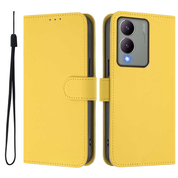 Funda de Cuero con Cordón para Teléfono con Sensación de Piel Global y Color Sólido para Vivo Y17S 4G (Amarillo Limón)