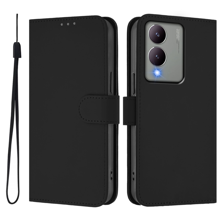 Funda de Cuero con Cordón para Teléfono con Sensación de Piel Global y Color Sólido para Vivo Y17S 4G (Negro)