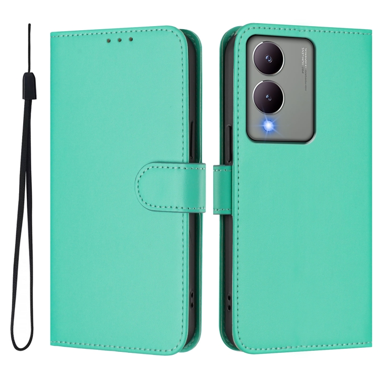 Funda de Cuero con Cordón para Teléfono con Sensación de Piel Global y Color Sólido para Vivo Y17S 4G (Verde)