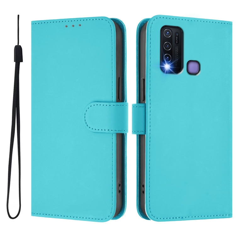 Funda de Cuero con Cordón para Teléfono con Sensación de Piel Global y Color Sólido para Vivo Y30 4G (Azul Lago)