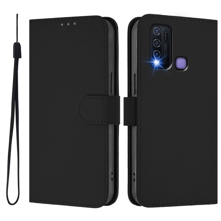 Funda de Cuero con Cordón para Teléfono con Sensación de Piel Global y Color Sólido para Vivo Y30 4G (Negro)