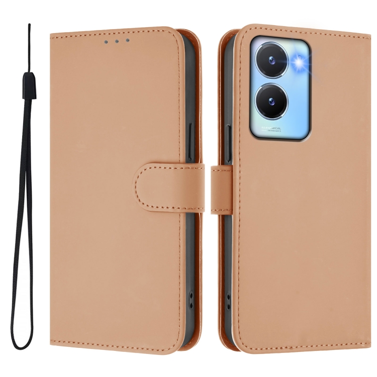 Funda de Cuero con Cordón para Teléfono con Tacto de Piel de Color Liso para Vivo Y56 5G Global / Y16 4G Global (Desnudo)