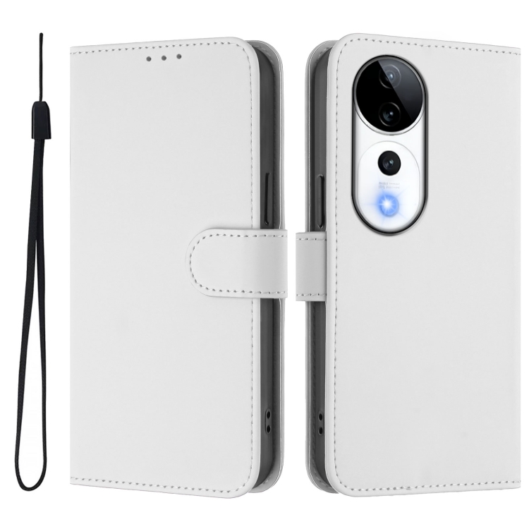 Funda de Cuero con Cordón para Teléfono con Textura de Piel de Color Sólido para Vivo S19 Pro (Blanco)