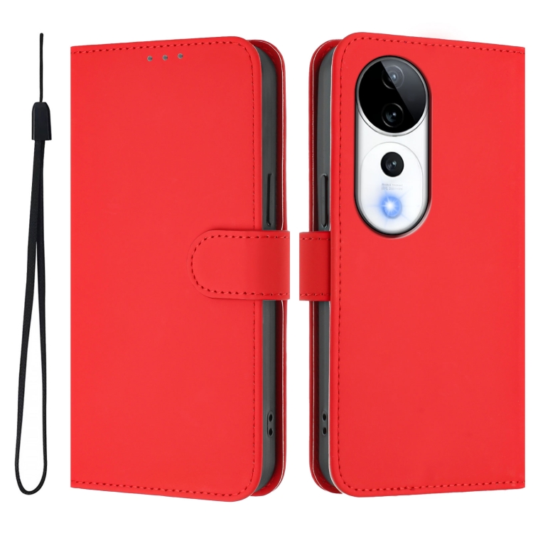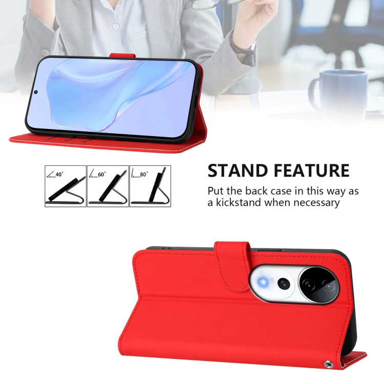 Funda de Cuero con Cordón para Teléfono con Textura de Piel de Color Sólido para Vivo S19 Pro (Rojo)