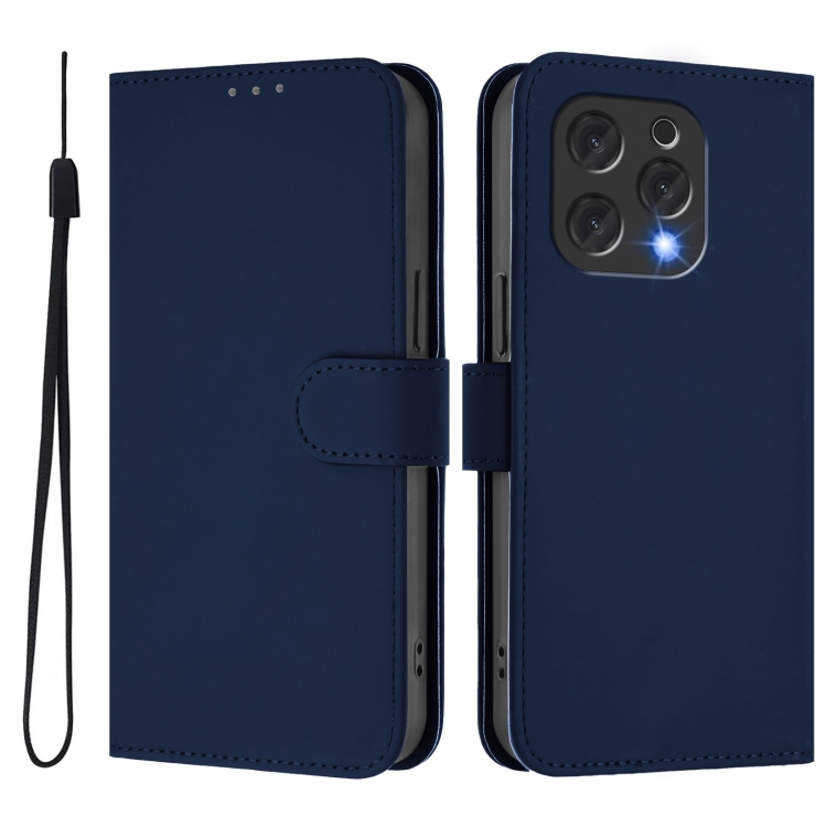 Funda de Cuero con Cordón para Teléfono Doogee N55 Plus con Tacto de Piel (Azul Marino)