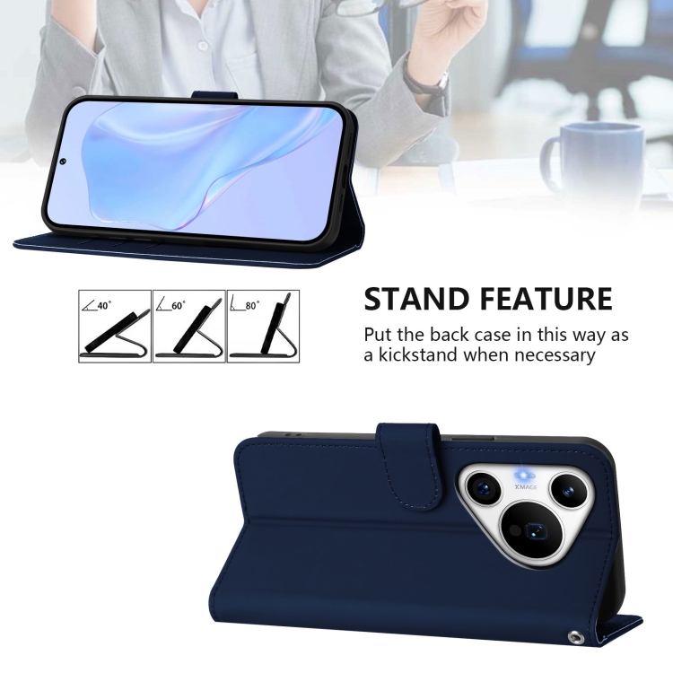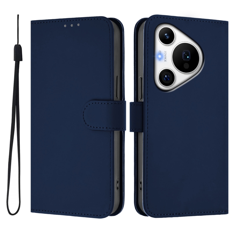 Funda de Cuero con Cordón para Huawei Pura 70 Pro y 70 Pro+ con Textura de Piel (Azul Marino)