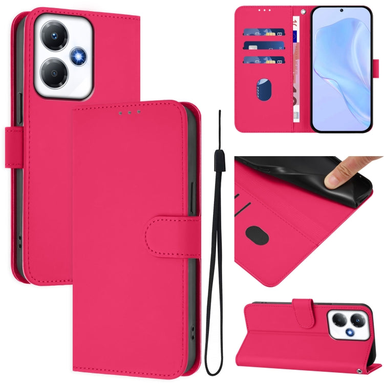 Funda de Cuero con Cordón para Infinix Hot 30 Play NFC 4G con Tacto de Piel (Rosa Rojo)