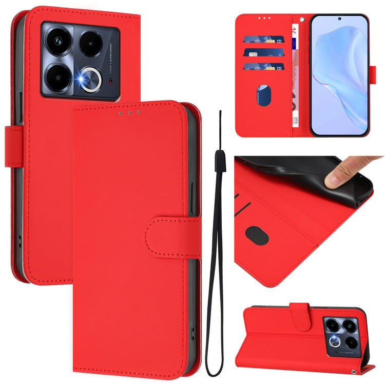 Funda de Cuero con Cordón para Infinix Note 40 5G con Tacto de Piel (Rojo)