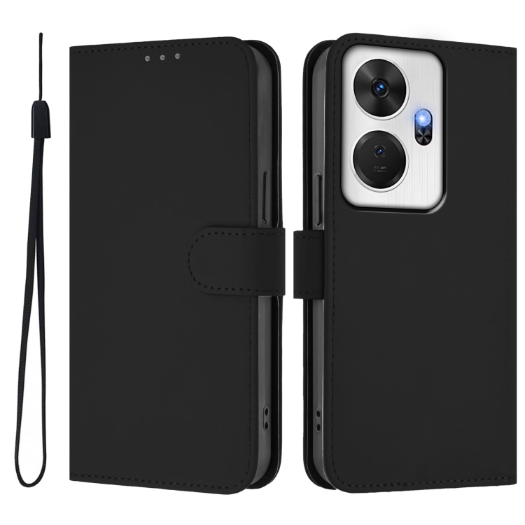 Funda de Cuero con Cordón para Teléfono Itel P55+ Textura de Piel (Negro)