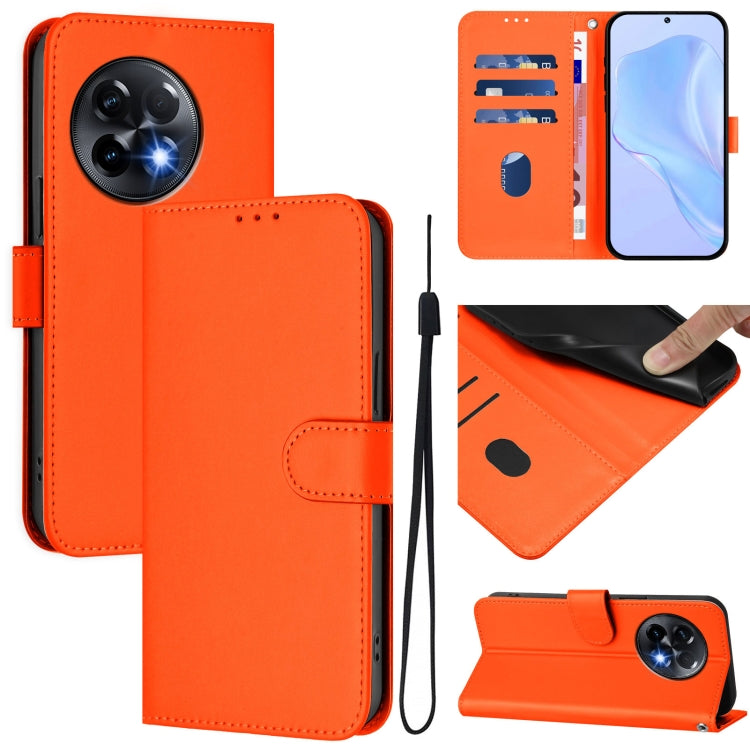 Funda de Cuero con Cordón para OnePlus 11R 5G con Tacto de Piel (Naranja)