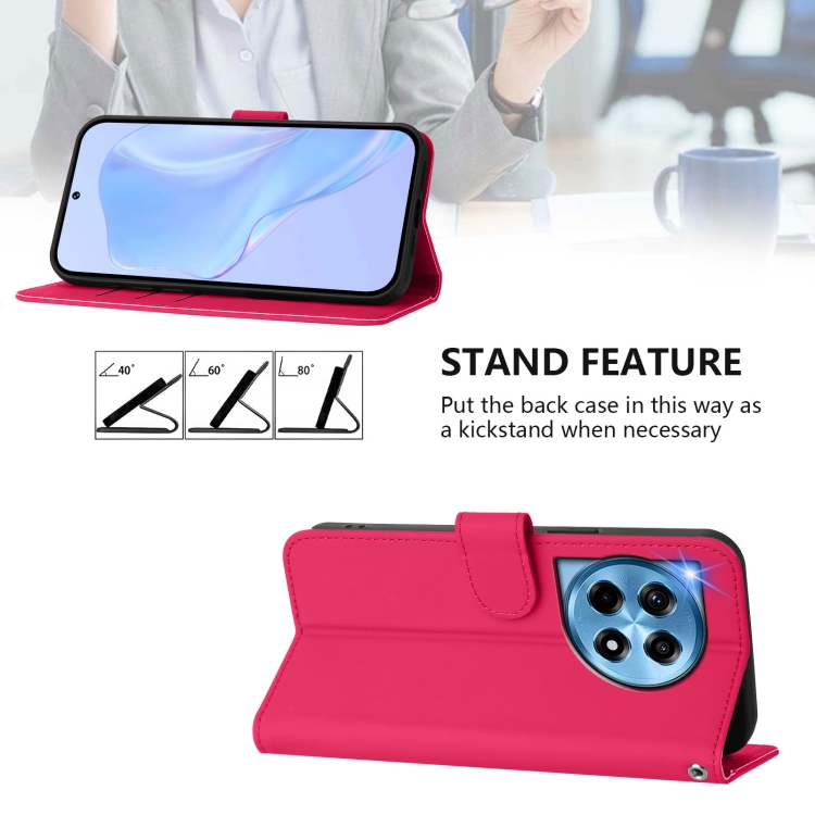 Funda de Cuero con Cordón para OnePlus 12 5G con Tacto de Piel (Rosa Rojo)