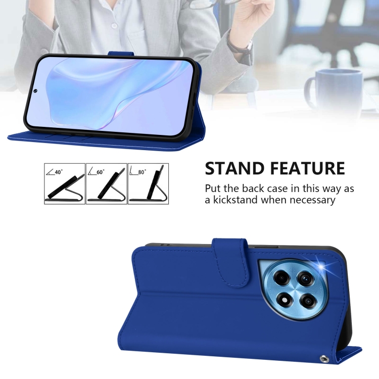 Funda de Cuero con Cordón para OnePlus 12R 5G con Tacto de Piel (Azul Oscuro)