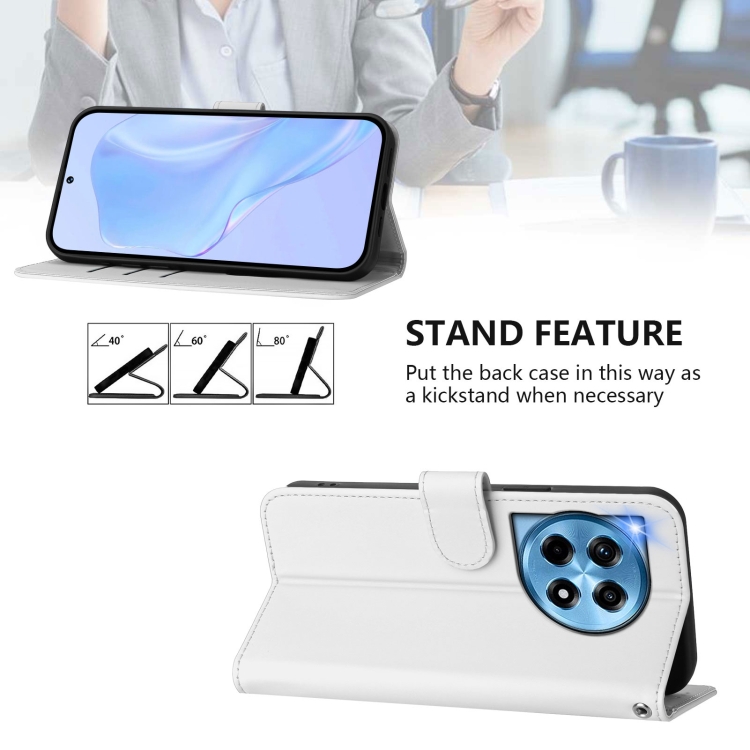 Funda de Cuero con Cordón para OnePlus 12R 5G con Tacto de Piel (Blanco)