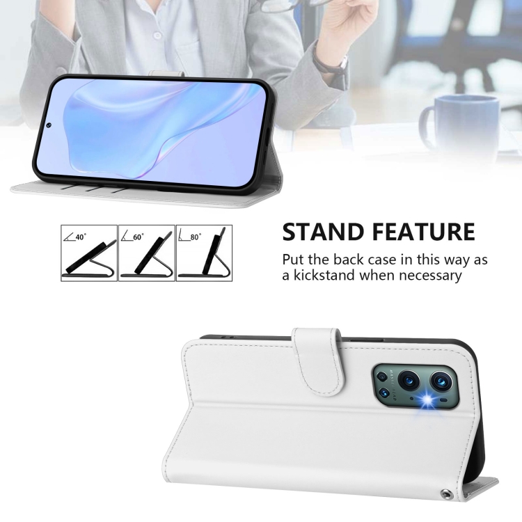 Funda de Cuero con Cordón para OnePlus 9 Pro Skin Feel (Blanco)