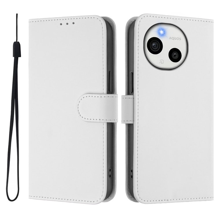 Funda de Cuero con Cordón para Sharp Aquos Sense9 Plus con Tacto de Piel (Blanco)