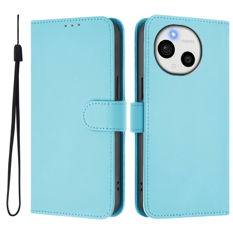Funda de Cuero con Cordón para Sharp Aquos Sense9 Plus con Tacto de Piel (Azul Cielo)