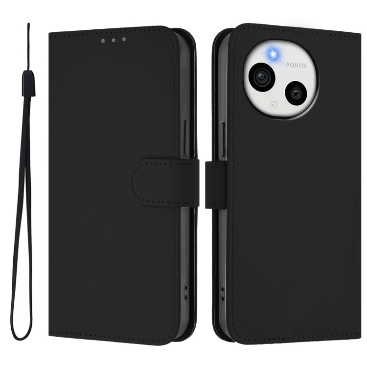 Funda de Cuero con Cordón para Sharp Aquos Sense9 Plus Textura de Piel (Negro)