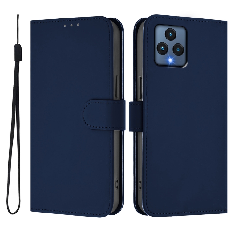 Funda de Cuero con Cordón para T-Mobile Revvl 6 5G y Revvl 6X 5G (Azul Marino)