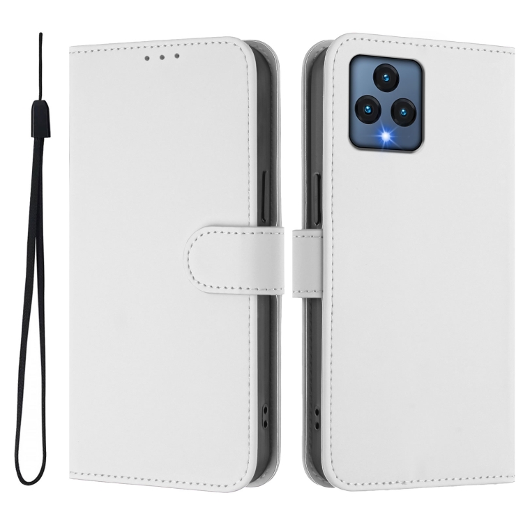 Funda de Cuero con Cordón para Teléfono T-Mobile Revvl 6 5G y Revvl 6X 5G (Blanco)