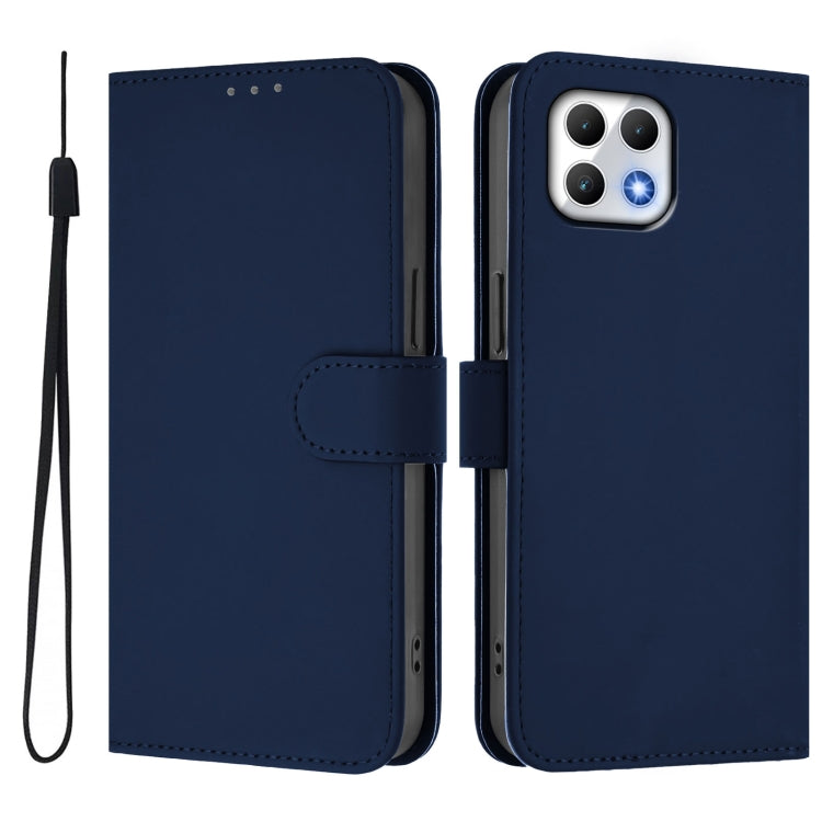Funda de Cuero con Cordón para Teléfono T-Mobile Revvl 7 5G con Tacto de Piel (Azul Marino)