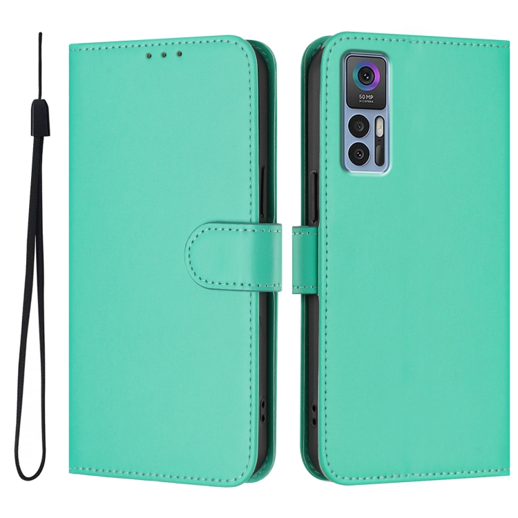 Funda de Cuero con Cordón para Teléfono TCL 30 4G / 30 5G / 30+ Tacto Piel (Verde)