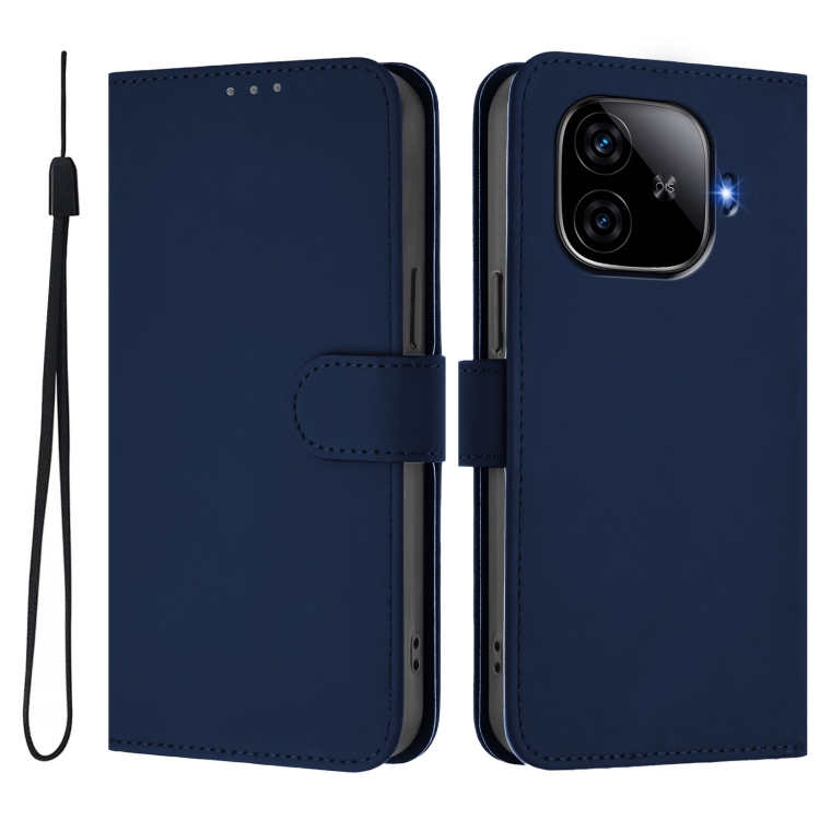 Funda de Cuero con Cordón para Teléfono Vivo Iqoo Z9 5G / Z9 Turbo 5G con Tacto de Piel de Color Liso (Azul Marino)