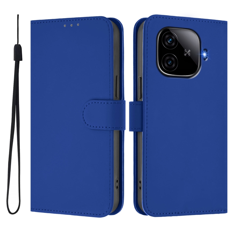 Funda de Cuero con Cordón para Teléfono Vivo Iqoo Z9 5G / Z9 Turbo 5G con Tacto de Piel de Color Sólido (Azul Oscuro)