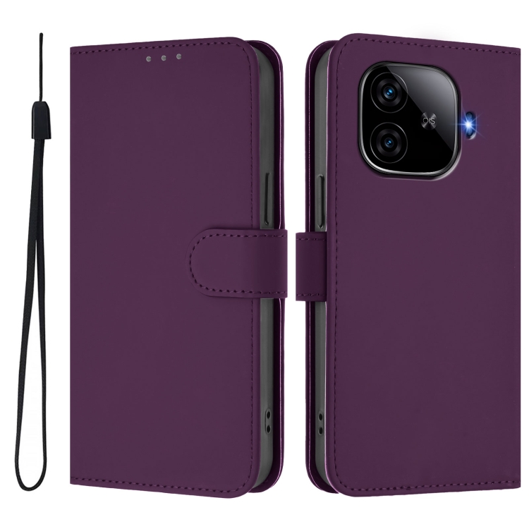Funda de Cuero con Cordón para Teléfono Vivo Iqoo Z9 5G / Z9 Turbo 5G con Tacto de Piel de Color Sólido (Violeta)