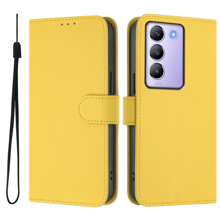 Funda de Cuero con Cordón para Teléfono Vivo Y100 5G Idn / V40 Se 5G con Tacto de Piel de Color Sólido (Amarillo Limón)