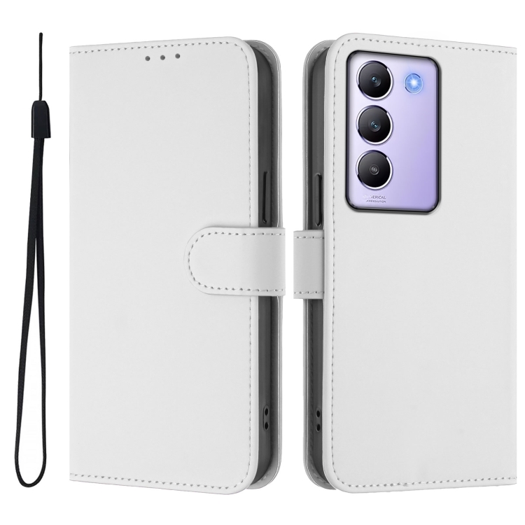 Funda de Cuero con Cordón para Teléfono Vivo Y100 5G Idn / V40 Se 5G con Tacto de Piel de Color Sólido (Blanco)