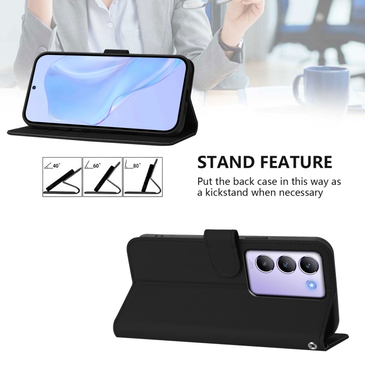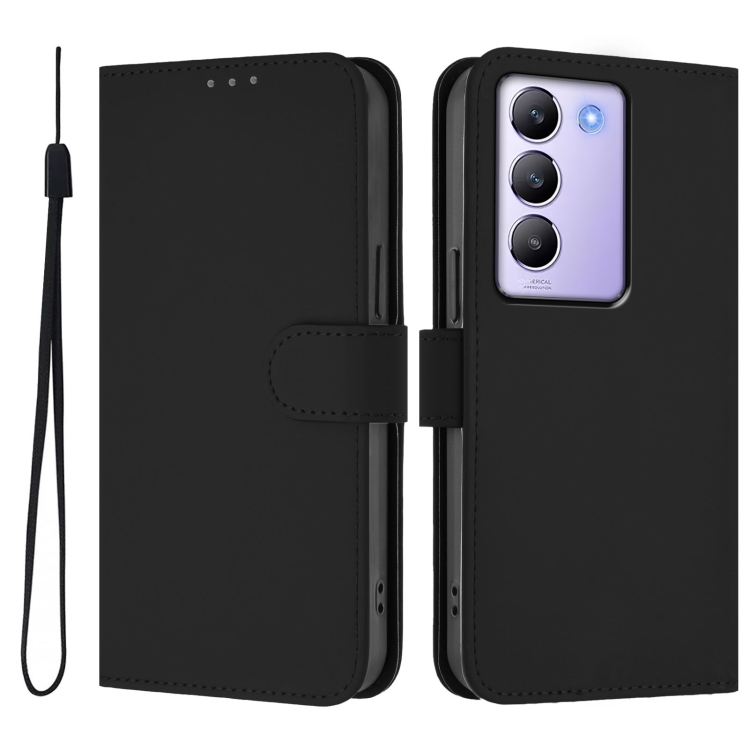 Funda de Cuero con Cordón para Teléfono Vivo Y100 5G Idn / V40 Se 5G con Tacto de Piel de Color Sólido (Negro)