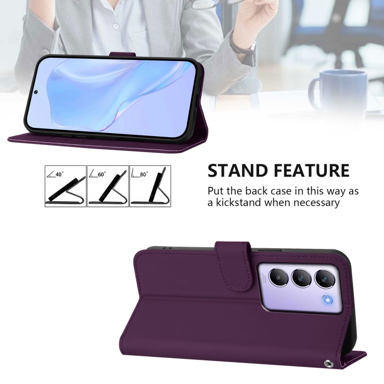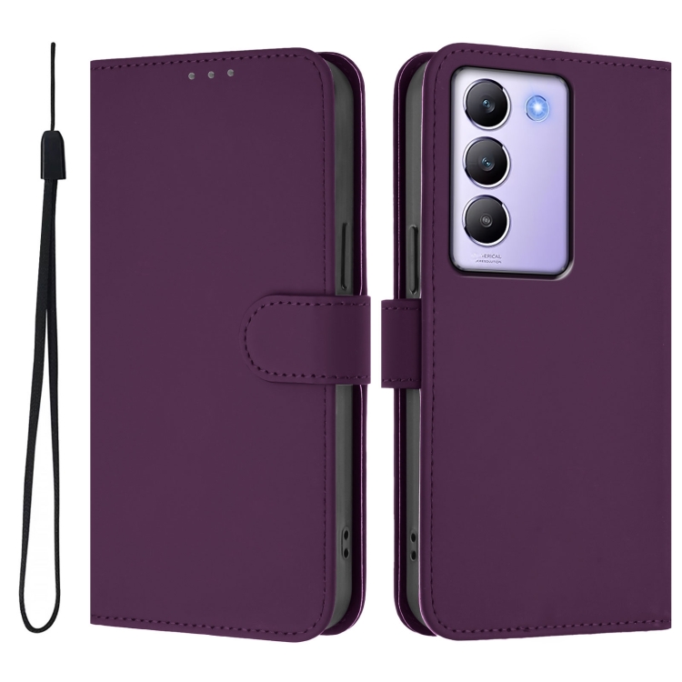 Funda de Cuero con Cordón para Teléfono Vivo Y100 5G Idn / V40 Se 5G con Tacto de Piel de Color Sólido (Violeta)