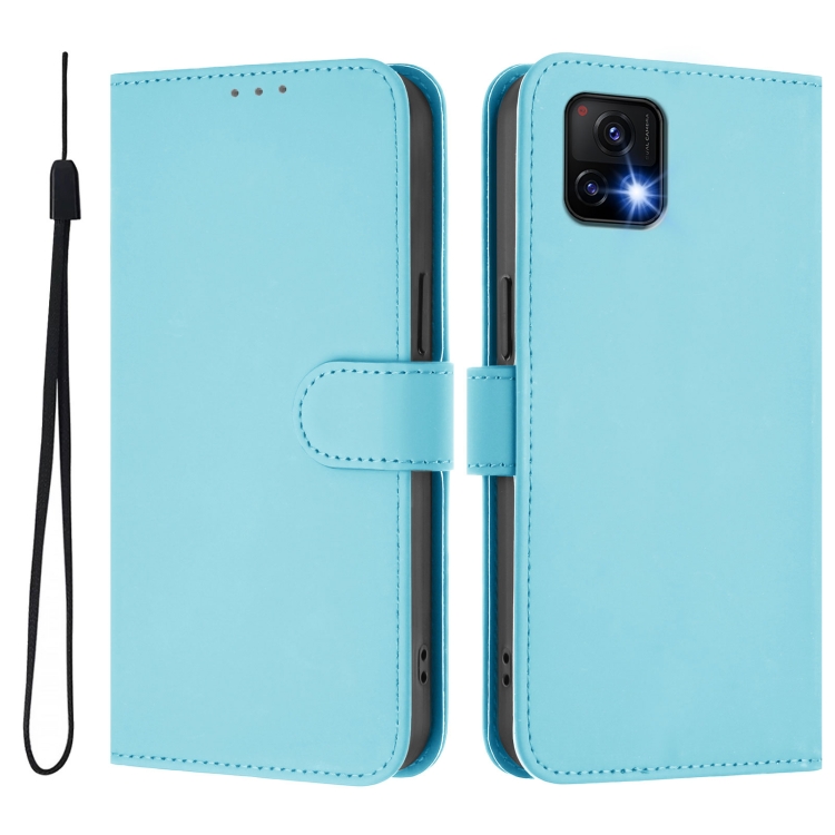 Funda de Cuero con Cordón para Teléfono Vivo Y52S 5G / Iqoo U3 / Y31S 5G con Tacto de Piel de Color Sólido (Azul Cielo)