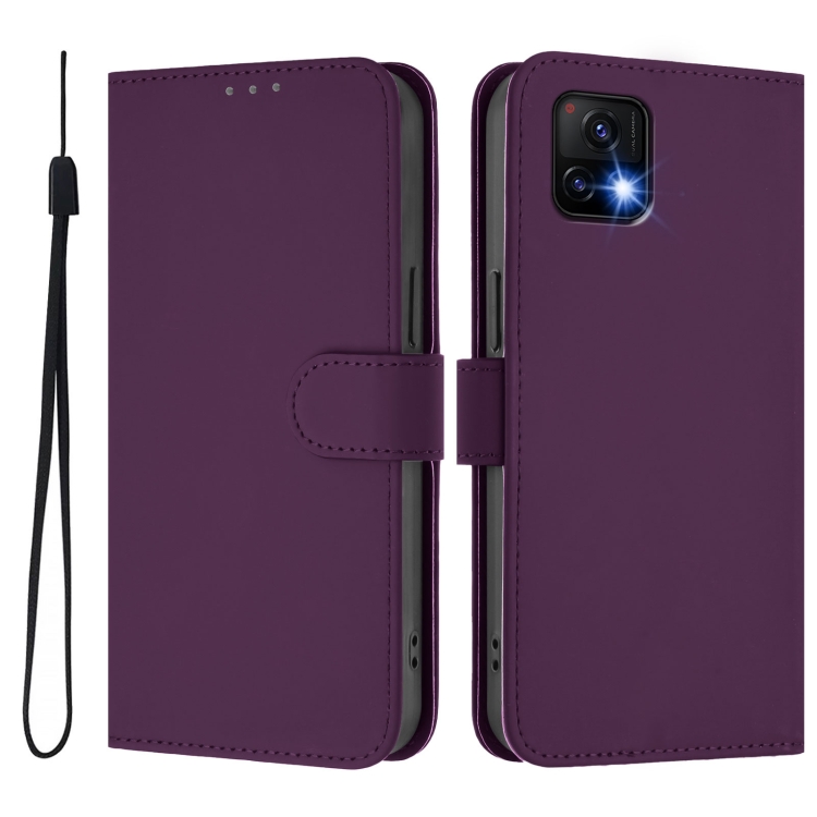 Funda de Cuero con Cordón para Teléfono Vivo Y52S 5G / Iqoo U3 / Y31S 5G con Tacto de Piel de Color Sólido (Violeta)