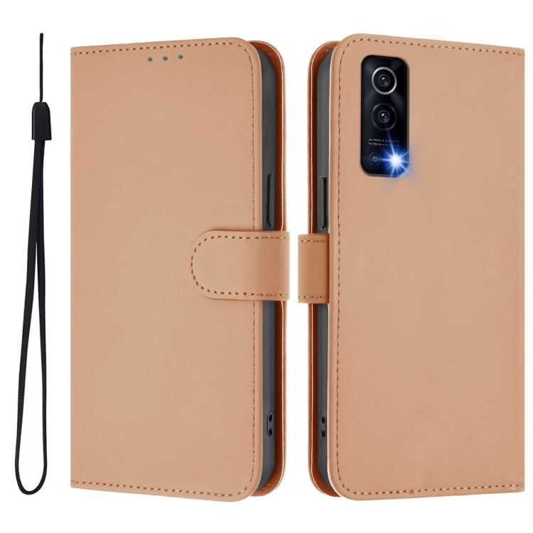 Funda de Cuero con Cordón para Teléfono Vivo Y72 5G / Iqoo Z3 / Y52 5G con Tacto de Piel de Color Liso (Desnudo)