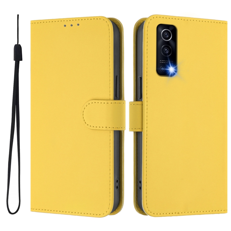 Funda de Cuero con Cordón para Teléfono Vivo Y72 5G / Iqoo Z3 / Y52 5G con Tacto de Piel de Color Sólido (Amarillo Limón)