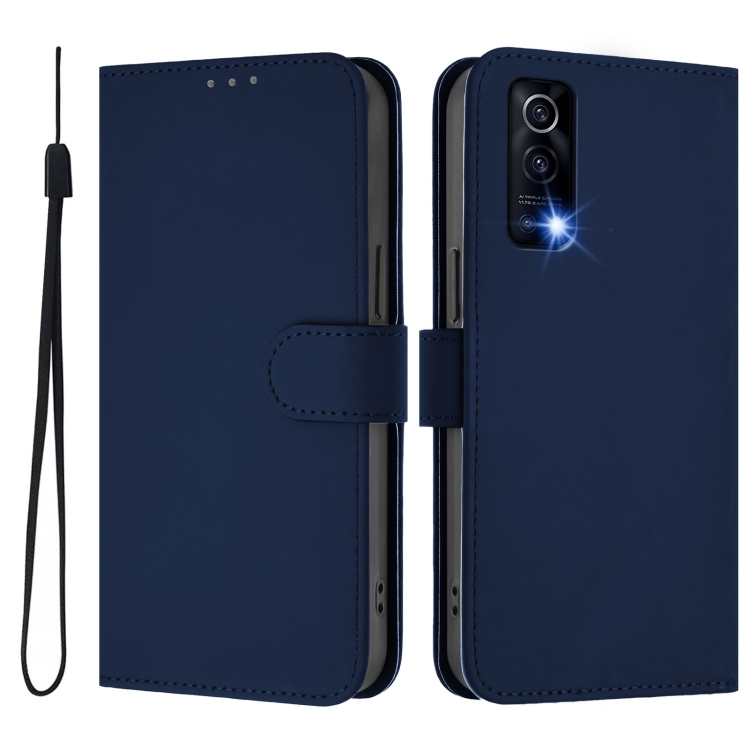 Funda de Cuero con Cordón para Teléfono Vivo Y72 5G / Iqoo Z3 / Y52 5G con Tacto de Piel de Color Sólido (Azul Marino)