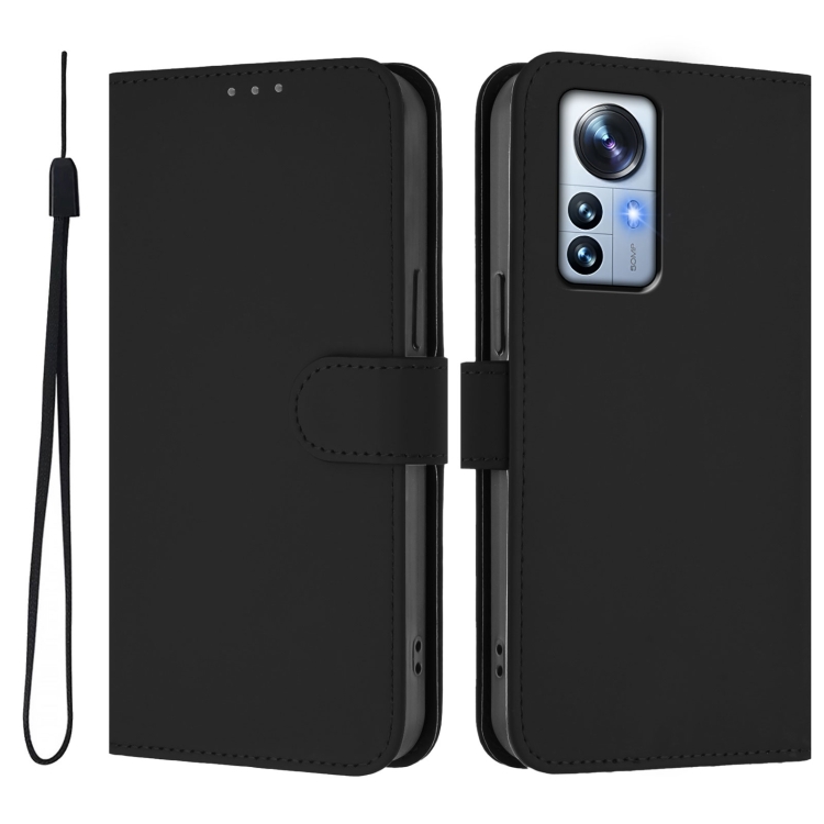 Funda de Cuero con Cordón para Teléfono Xiaomi 12S Pro / 12 Pro Skin Feel de Color Sólido (Negro)