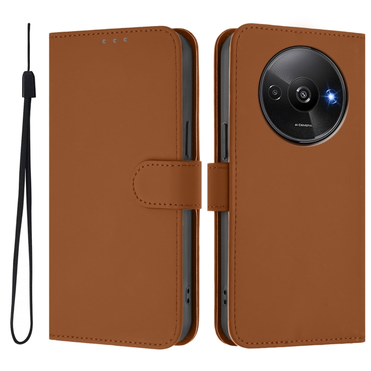 Funda de Cuero con Cordón para Teléfono Xiaomi Poco C61 4G con Tacto de Piel de Color Sólido (Marrón)