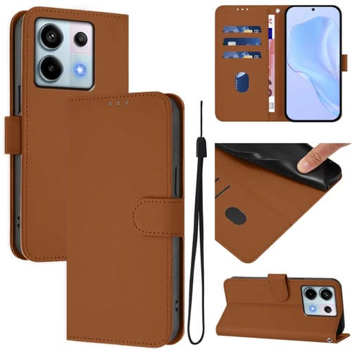Funda de Cuero con Cordón para Teléfono Xiaomi Poco X6 5G con Tacto de Piel de Color Sólido (Marrón)