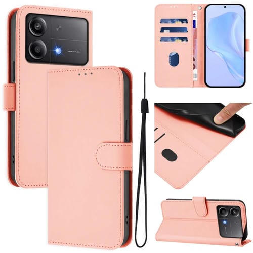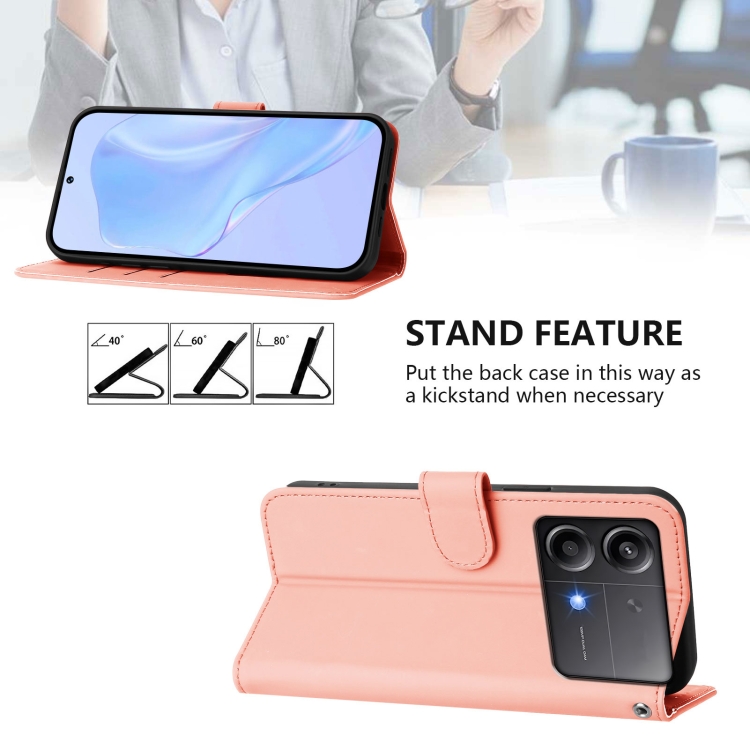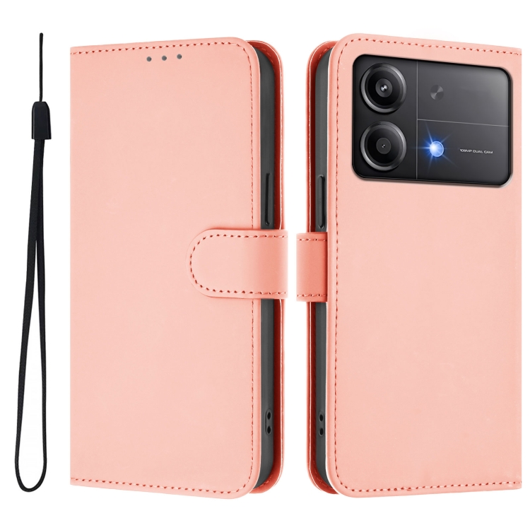 Funda de Cuero con Cordón para Teléfono Xiaomi Poco X6 Neo 5G con Sensación de Piel Global En Color Sólido (Rosa)