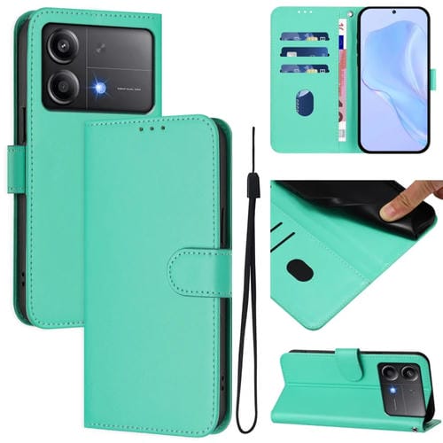 Funda de Cuero con Cordón para Teléfono Xiaomi Poco X6 Neo 5G con Sensación de Piel Global En Color Sólido (Verde)