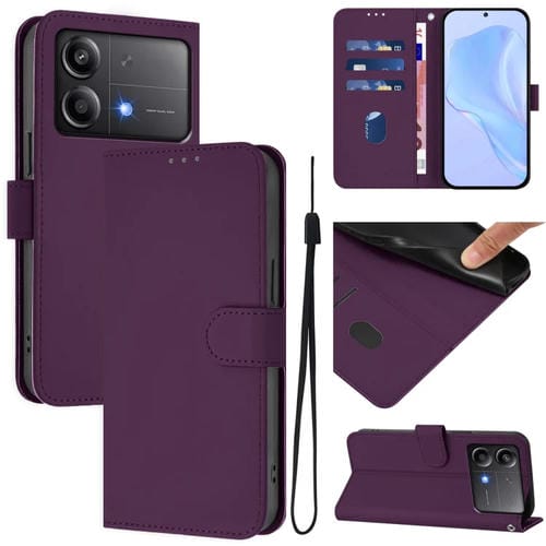 Funda de Cuero con Cordón para Teléfono Xiaomi Poco X6 Neo 5G con Sensación de Piel Global En Color Sólido (Violeta)