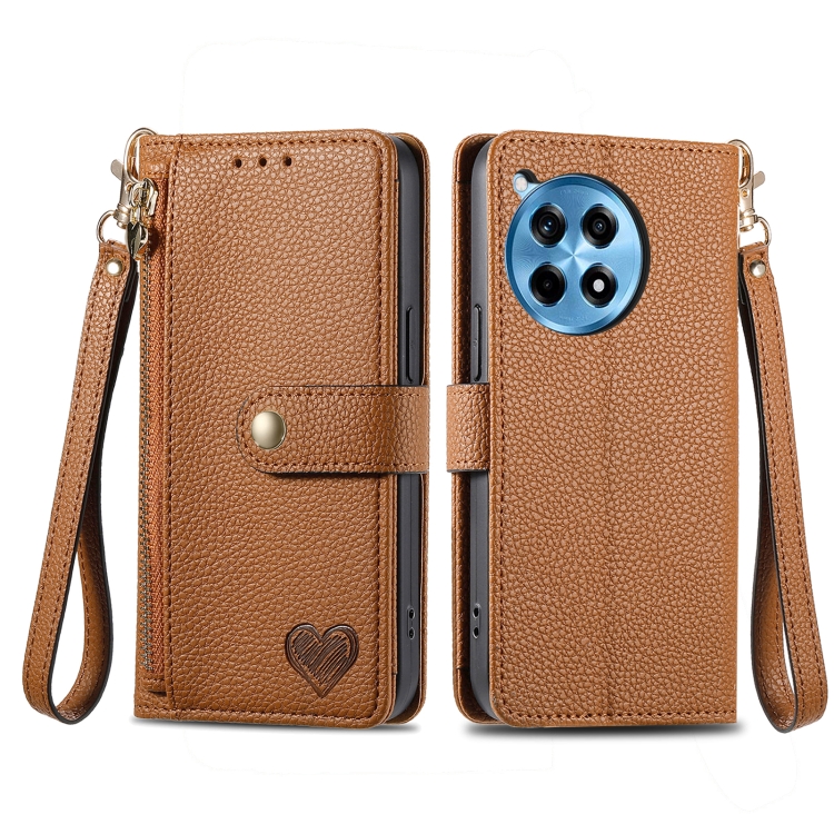 Funda de Cuero con Cordón y Cremallera Love para OnePlus Ace 3 Pro (Marrón)